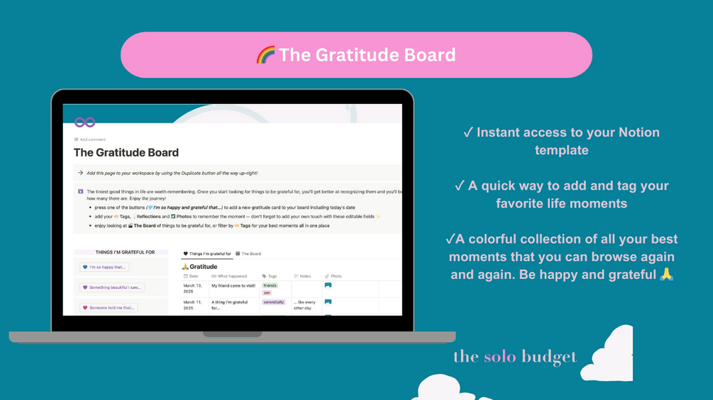 The Gratitude Board - a collection of life's best moments in a Notion template